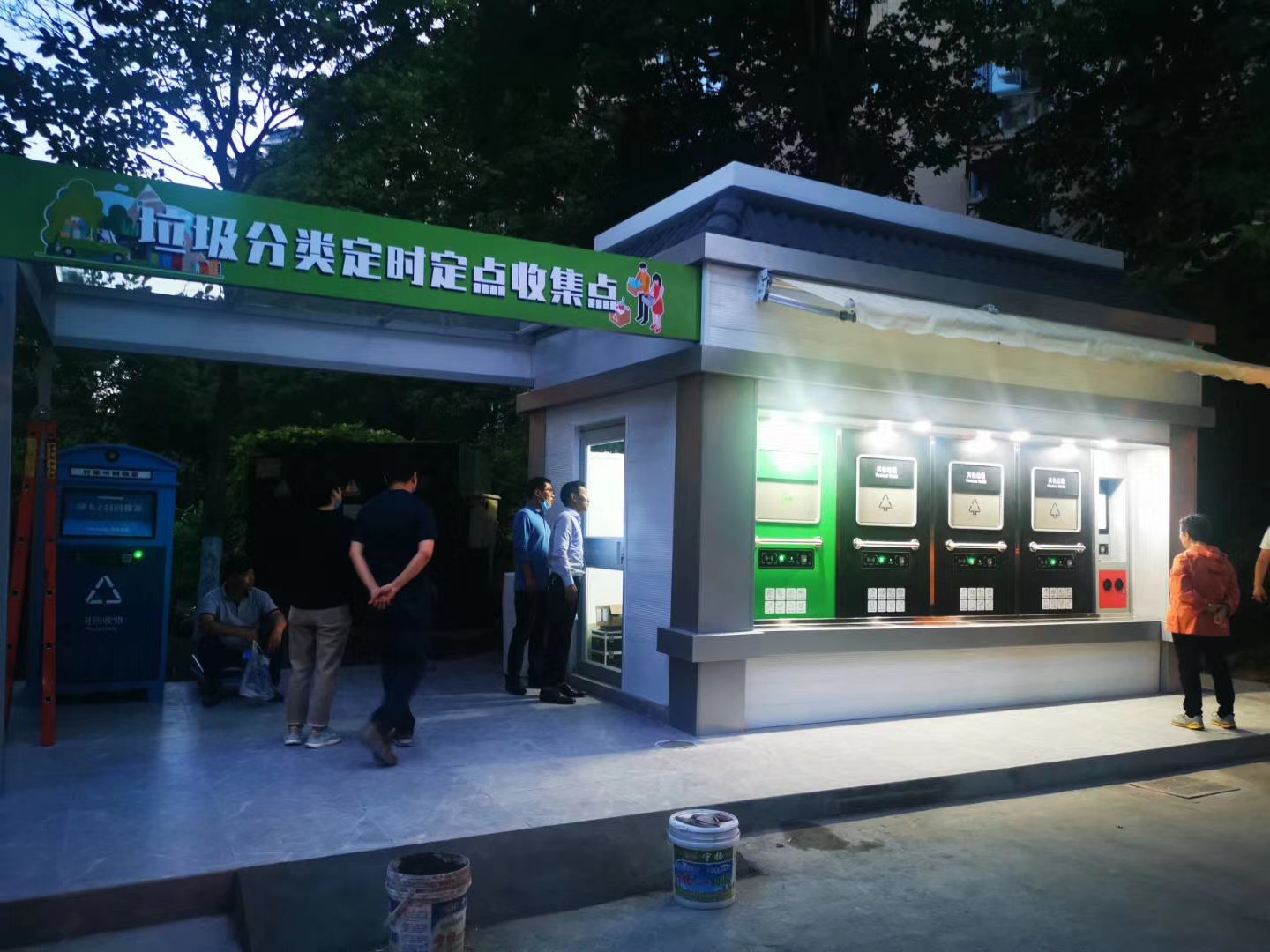 貓先生智能垃圾分類亭房江北新區(qū)中標之后,在短時間內迅速落地,8月22日,江北新區(qū)的浦泰和天下二期、泰山街道的多個小區(qū)居民們迎來了貓先生智能垃圾分類亭房的首日試運營。