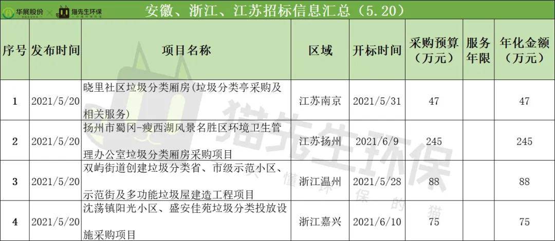2021年5月20日,安徽、浙江、江蘇招投標項目共4個。